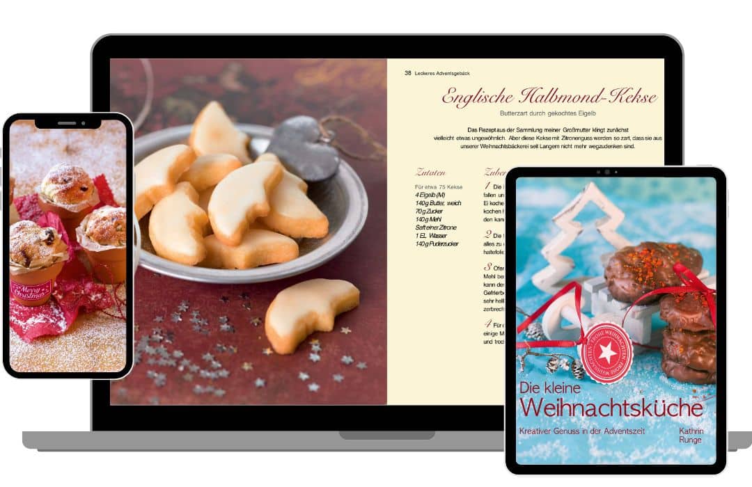 Aus dieser Leidenschaft heraus ist mein eBook „Die kleine Weihnachtsküche“ entstanden: ein Begleiter durch die kalte Jahreszeit mit liebevoll erstellten, allesamt vegetarischen Rezepten, die sich perfekt zum Selber-Verwöhnen, gemeinsamen Genießen und Verschenken eignen.