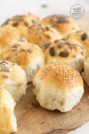 hab die Brötchen nachgebacken und bin absolut begeistert vom Ergebnis! Die Brötchen haben super geschmeckt. Die Herstellung ist wirklich kinderleicht (und das sage ich, obwohl mir Hefeteig generell suspekt ist ^^). Hab als Topping Kürbiskerne, Sesam und geriebenen Käse genommen. 🙂 Danke für das tolle Rezept!