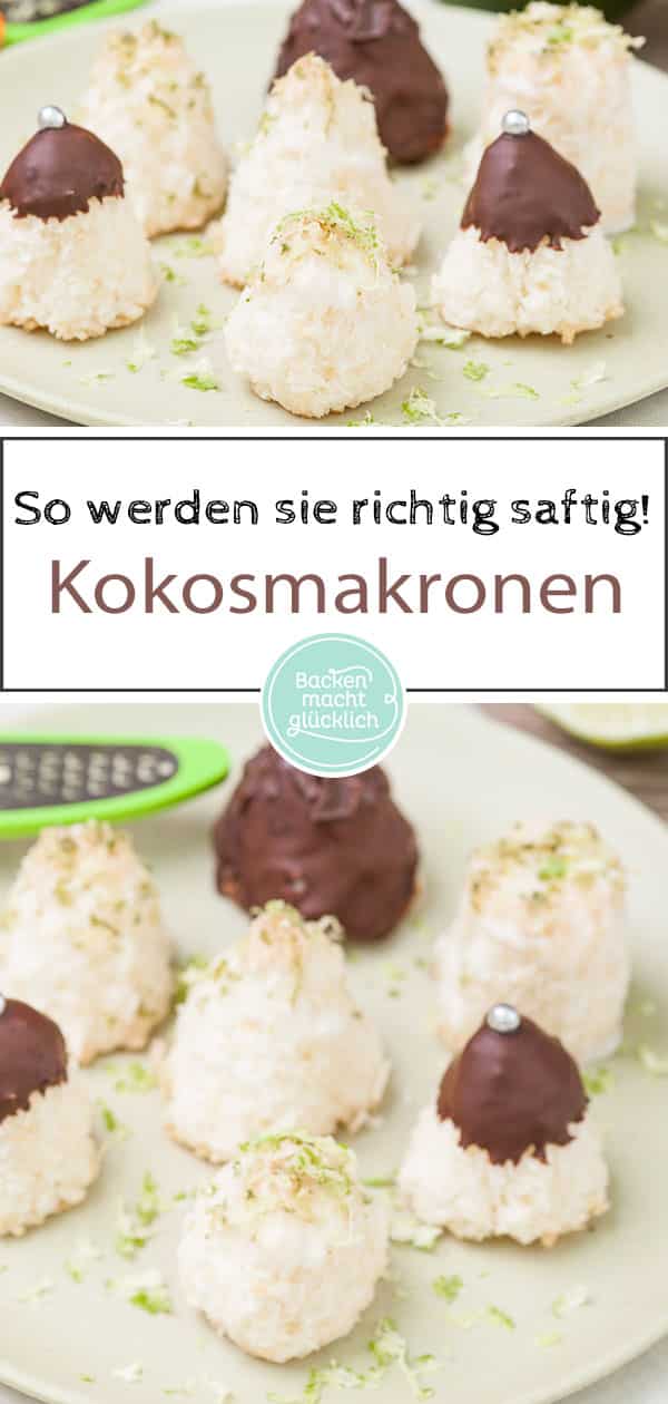 Übrigens: Es gibt ja auch Rezepte mit Quark oder Marzipan. Mir gefällt dieses erfrischende, nur leicht säuerliche Kokosmakronen-Rezept aber besser. Und wie werden Kokosmakronen saftig? Wer wie ich auf die weiche Konsistenz steht, sollte auf jeden Fall die Backzeit im Auge behalten: Die Makronen müssen noch schön hell sein, wenn ihr sie aus dem Ofen nehmt.