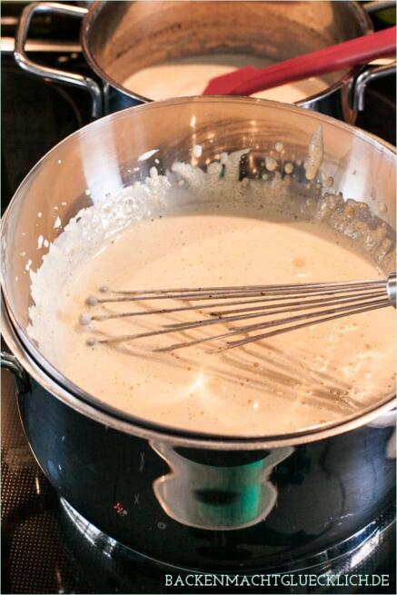 Eis-Rezepte bestehen aus zwei (bzw. drei) Schritten: Nach der Zubereitung der Eismasse folgt das Mischen und Kühlen der Zutaten in der Eismaschine. Wer Eiscreme in Konsistenz von Softeis oder Frozen Joghurt haben möchte, kann gleich losessen. Wer festeres Eis mag, muss die Masse zunächst noch für einige Zeit ins Tiefkühlfach geben. „Das Eis reift“ heißt das in der Anleitung zum Kitchenaid Ice Cream Maker. Eine Eismaschine ist nicht nötig, meiner Meinung nach aber doch sinnvoll. Wer nämlich keine hat, muss die Eismasse immer wieder von Hand bzw. mit dem Schneebesen aufschlagen, damit sie nicht zu einem Eisblock mit Kristallen wird. Das kann etwas anstrengend sein, zumindest jedoch zeitaufwändig. Hier die Schritte für selbstgemachtes Eis: