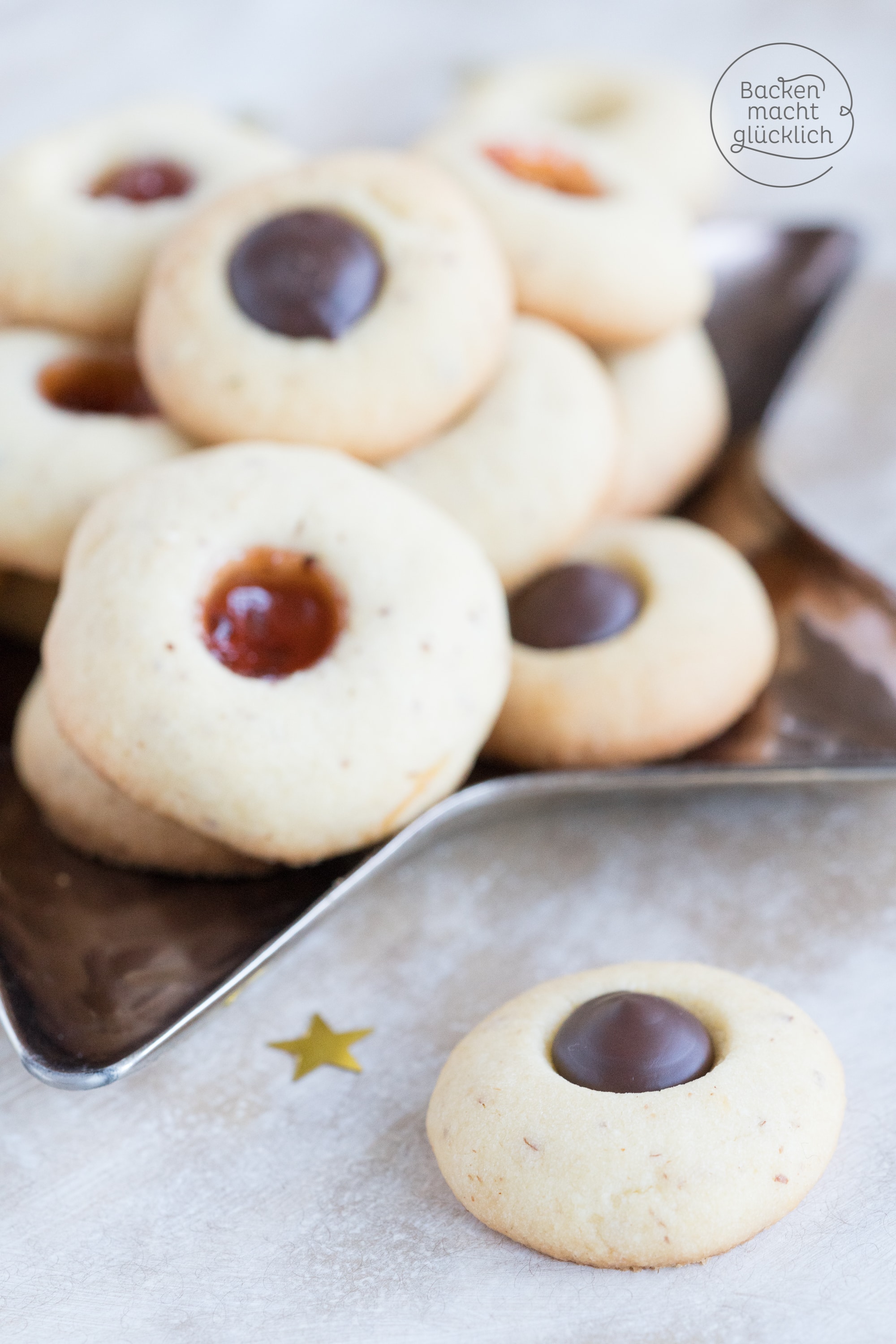 Engelsaugen gehören unbedingt auf unseren Plätzchenteller: sie sind mürbe, fruchtig und ein echter Klassiker der Weihnachtsbäckerei. Außerdem sind die gefüllten Plätzchen, die auch unter dem Namen Husarenkrapfen bekannt sind, einfach zu backen und wunderbar variabel.