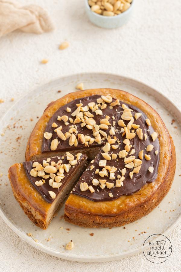 Dieser amerikanische Käsekuchen mit Peanutbutter, Knusperboden und Ganache schmeckt einfach umwerfend!