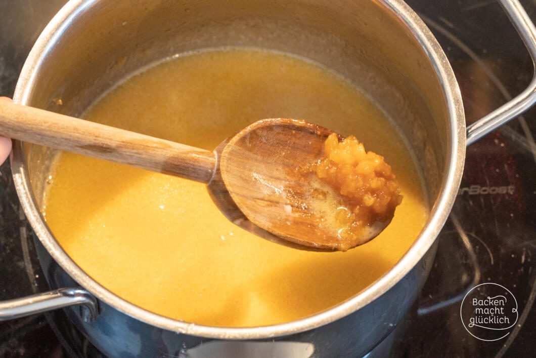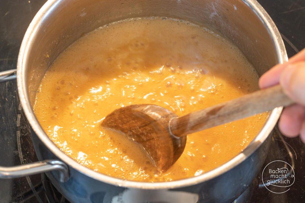- Auch bei diesem Schritt kann ein Teil des Zuckers nochmal leicht auskristallisieren, was durch das weitere Rühren und Köcheln aber verschwindet.