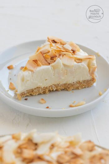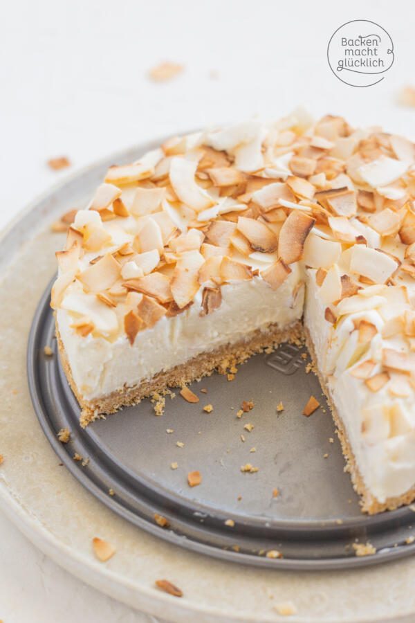 Einfaches Rezept für eine sommerliche Kühlschranktorte mit Knusperboden und himmlischer Creme. Wer Kokosnüsse mag, wird diesen No Bake Käsekuchen lieben ♥