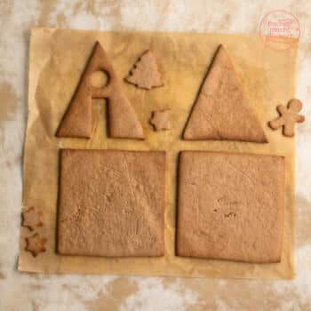 - Vorlage: Ihr könnt euch die Papierschablonen selbst auf Papier aufzeichnen und ausschneiden oder meine Lebkuchenhaus-Schablone als PDF verwenden (A4 zum Ausdrucken).
