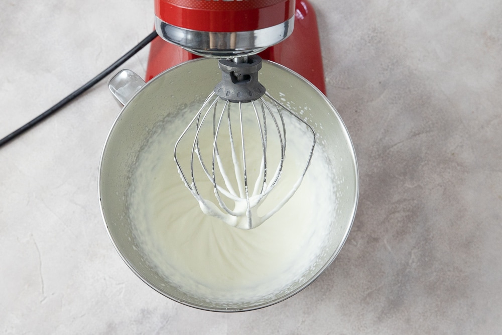 - Die Sahne ebenfalls halbsteif schlagen.