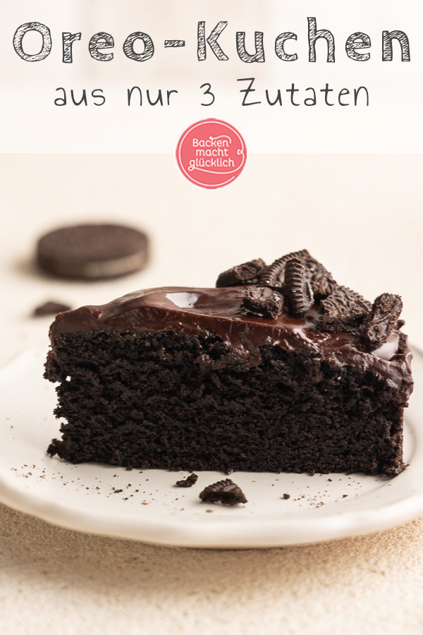 Die Rezeptinspiration stammt aus einem amerikanischen Backbuch von Fittwaffles Kitchen, das es inzwischen auch auf deutsch gibt. Allerdings mache ich den Oreokuchen aus 3 Zutaten anders als im Original (dort wird z.B. eine Backzeit von 15 Minuten angegeben, während der Kuchen bei mir doppelt so lang braucht, und das Trennen von Keksen und Creme). Und anders als viele weitere Nachahmer wie hier, wo z.B. nur die Hälfte an Keksen verwendet wird. Klappt so nicht. Übrigens: Im Original heißt der Oreokuchen „sponge cake“, wortwörtlich übersetzt „Schwamm-Kuchen“. Trifft nicht ganz zu, aber ein klitzkleines wenig 😉