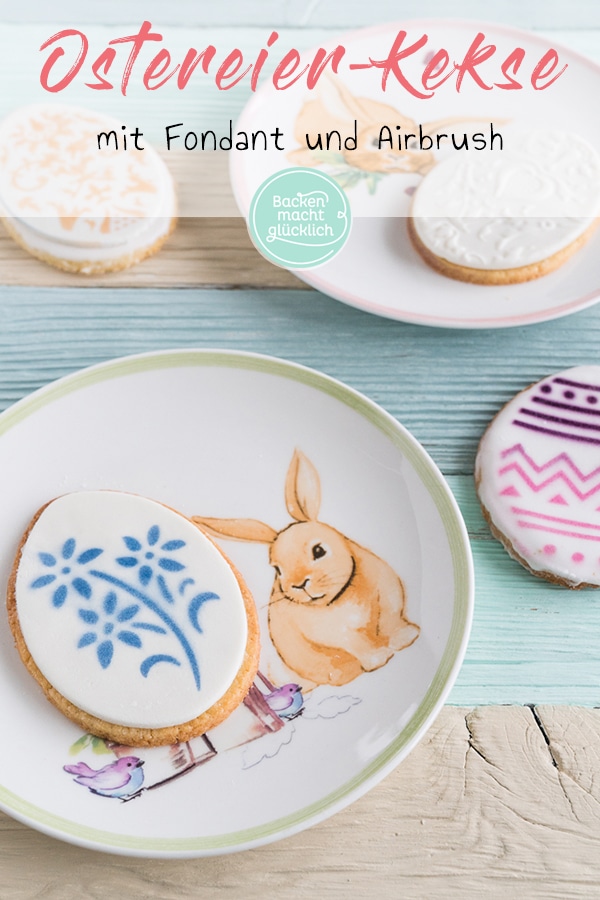 Einfaches Rezept für hübsche und besondere Osterei-Plätzchen, die sich mit Zuckerguss, Lebensmittelfarbe, Fondant oder Airbrush verzieren lassen