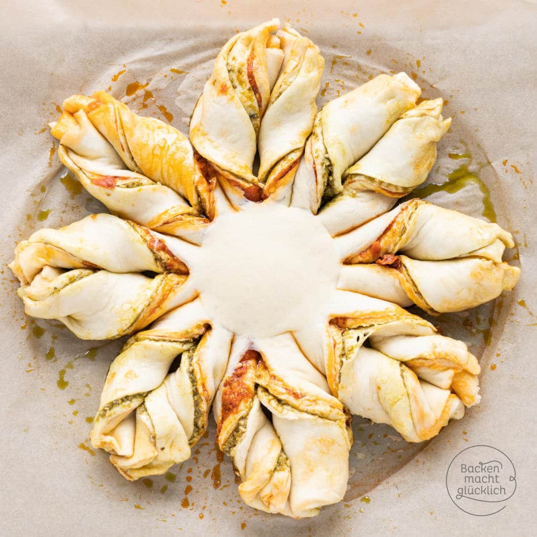 Blitzschnelle Variante: Pestoblume mit Fertigteig