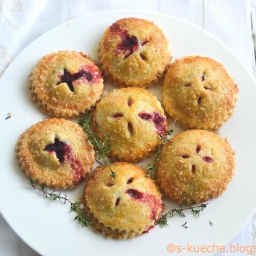 Diese kleinen Mini Pies wandern quasi von selbst in den Mund, man kann sie gut verschenken oder unterwegs anbieten und sie gehen blitzschnell! Der buttrig-zarte Teig zergeht auf der Zunge und die Füllung ist fein abgestimmt: Leicht süß und doch pikant.