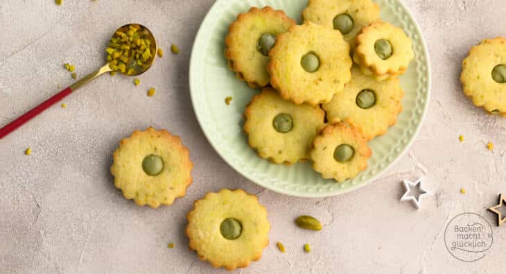 Feine Plätzchen mit Pistazien im Teig und in der Füllung. Eine tolle Abwechslung für euren Weihnachtsteller!
