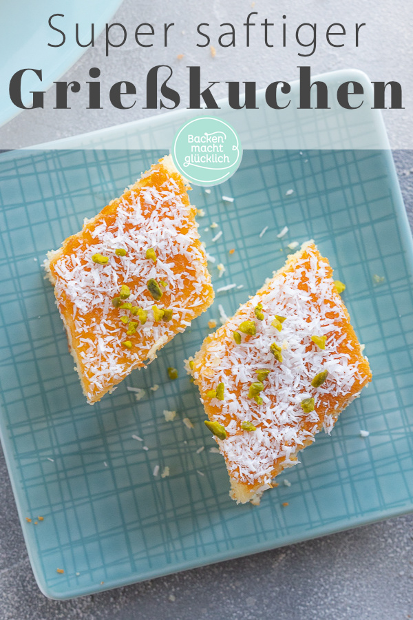 Es kann gut sein, dass ihr ein neues Lieblingsrezept habt, wenn ihr diesen saftigen Grießkuchen nachgebacken habt. Die Konsistenz ist einfach genial: Da der Grießkuchen mit Joghurt zubereitet und zusätzlich mit Sirup getränkt wird, ist das Ergebnis wirklich sehr saftig.