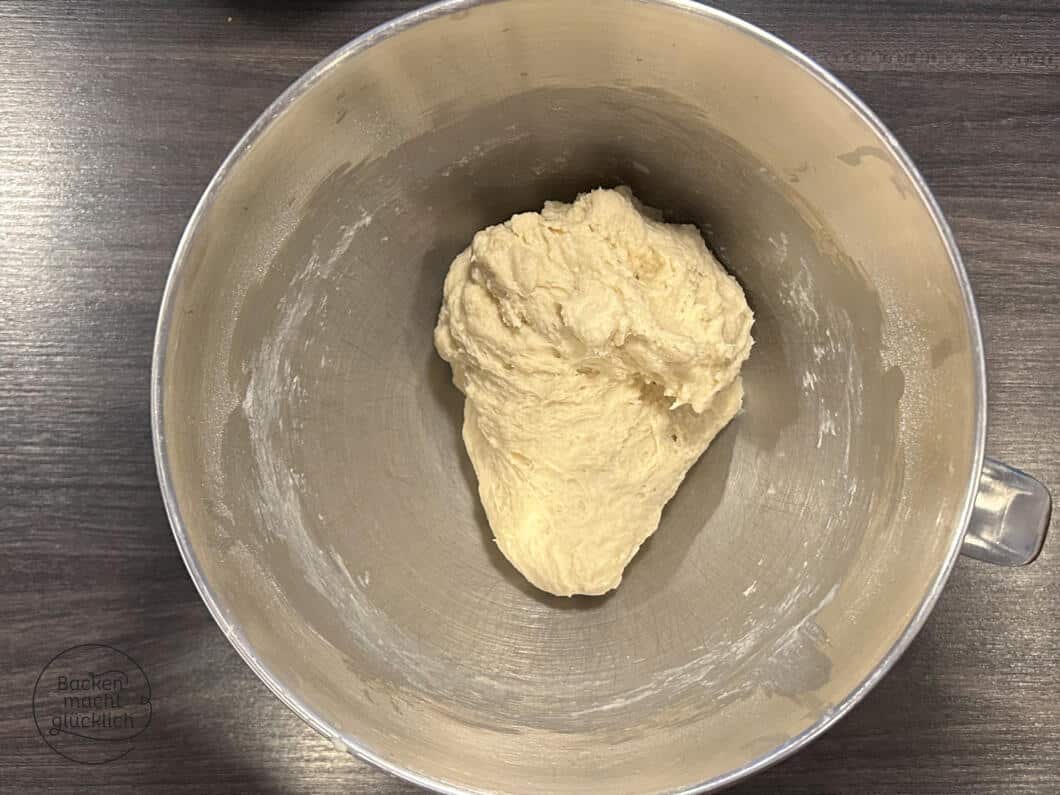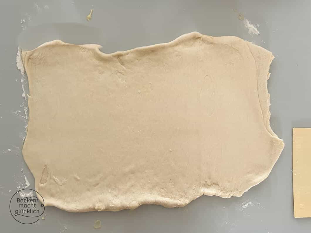 - Hefeteig vorbereiten: Die Basis ist ein klassischer, weicher Hefeteig. Er wird nach dem Gehen ganz anders weiter verarbeitet als gewohnt.
