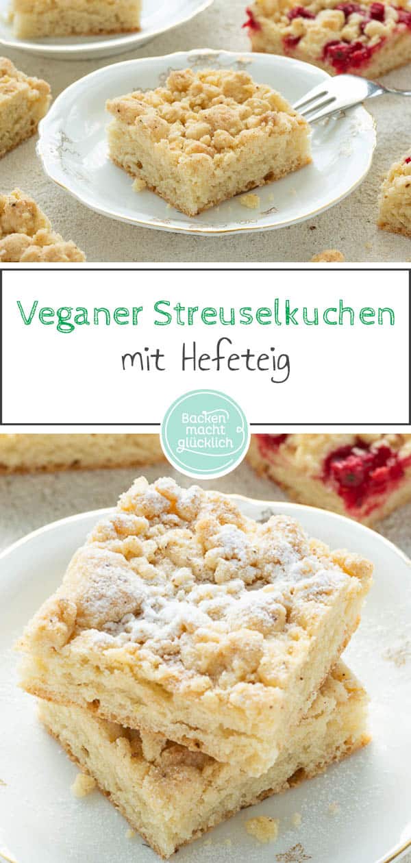 Meine Meinung ist ja: Streusel gehen immer. Egal, ob auf veganem Hefeteig, mit Aprikosen und Quark oder mit Pudding und Kirschen. Stöbert doch mal durch unsere vielen verschiedenen Streuselkuchen-Kreationen. Oder durch meine veganen Backrezepte (zum Beispiel dem veganen Hefezopf, die veganen Nussecken oder dem veganen Beeren-Crumble). Einen schönen Tag euch allen!