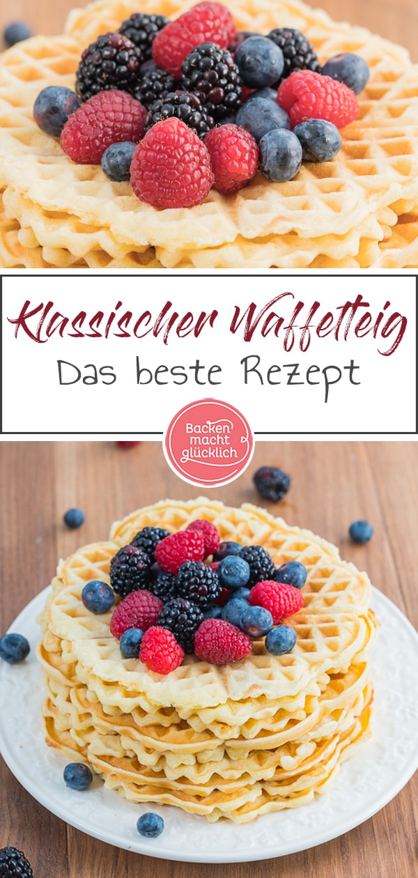 Ich kann euch den Klassiker sehr ans Herz legen ♥! In unserer Waffelrezepte-Sammlung findet ihr viele weitere tolle Varianten. Egal, ob gesunde oder pikante Waffeln; ob Waffeln mit Hefeteig oder eben eher traditionell: Viel Spaß beim Nachmachen – heizt schonmal das Eisen vor!